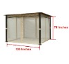 This universal netting set features:Vertical zipper on all four sides, allowing entry on all four sides. Elastic tie backs that allow you to gather the netting on each corner. Banded fabric/velcro tie backs that allow you to fasten each panel of the four sided netting set to the gazebo frame on each corner. Universal plastic "shower curtain" style rings to allow quick attachment of the netting to your existing gazebo frame. Available in Beige color only. Not available for 12' x 12' gazebos. Dimensions: 120"L x 76"H on each side of netting set.